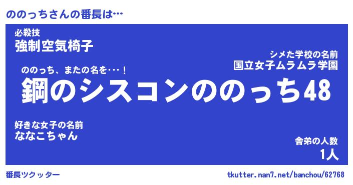 | 男性向けラノベタイトル風あだ名 | 『ノノッチアートオンライン』 |