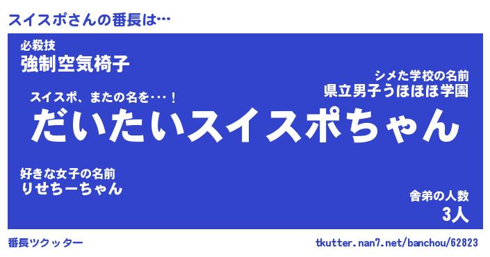 | ピコ太郎風あだ名 | 『スコ四郎』『ピス十郎』『スイ史郎』 |