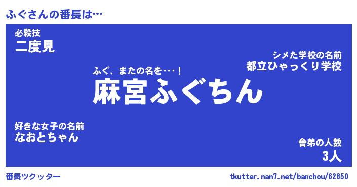 | 2回繰り返すあだ名 | 『ふぐふぐ』『ふふぐぐ』『ぬるぬる』 |