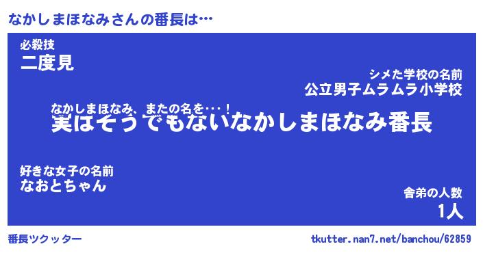 | 恥ずかしいあだ名 | 『プリティーなかしまほなみ』『なかちん』 |