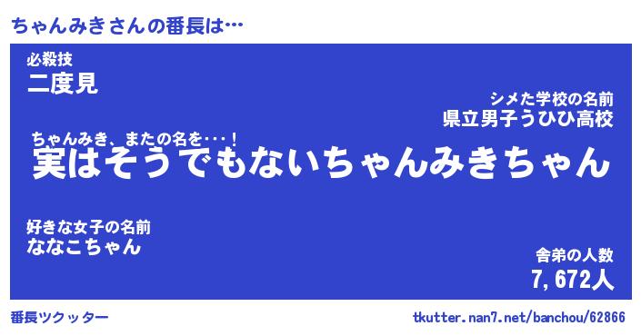 | ヒーロー風カッコイイあだ名 | 『スーパーチャンミキ』『炎刃騎士チャ』 |