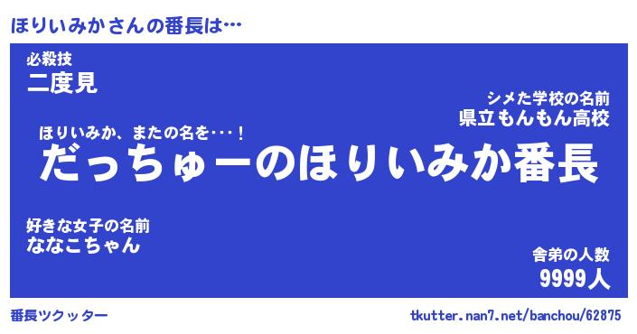 | 恥ずかしいあだ名 | 『プリティーほりいみか』『ほりっちょ』 |