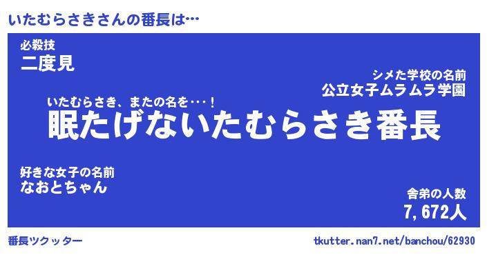 | ピコ太郎風あだ名 | 『イコ一郎』『ピイ一郎』『イタ六郎』 |