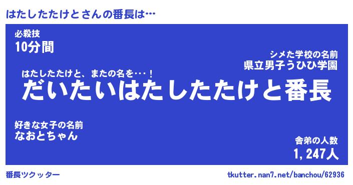 | 男性向けラノベタイトル風あだ名 | 『はたしたたけとの憂鬱』 |