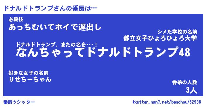 | 肩書あだ名 | 『ドナルドトランプ社長』 |