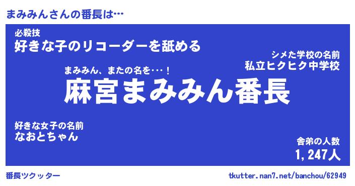 | 意味不明あだ名 | 『ペロリンまみみん』『永久保存まみみん』 |