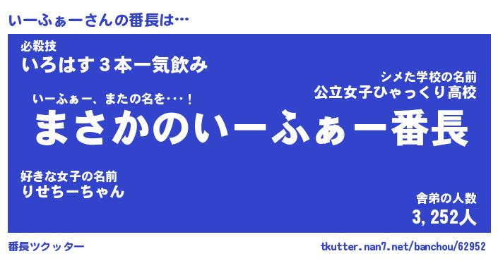 | 伝説のあだ名 | 『伝説のスナイパーいーふぁー』 |