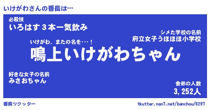 | ヘコむあだ名 | 『いけもー』『なまこ酢』『いけお』 |