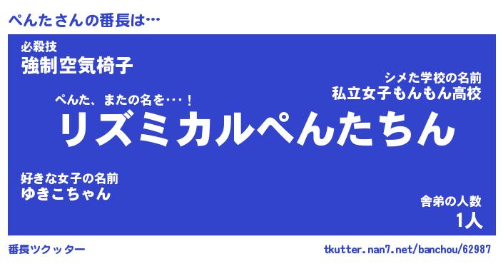 | 意味不明あだ名 | 『ペロリンぺんた』『ぺんたフォーエバー』 |