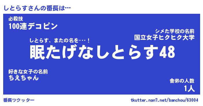 | 肩書あだ名 | 『しとらす店長』『しとらす総理大臣』 |