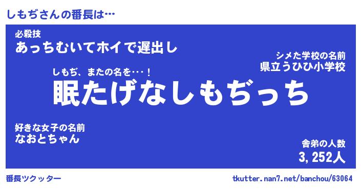 | 伝説のあだ名 | 『封印されしスナイパーしもぢ』 |