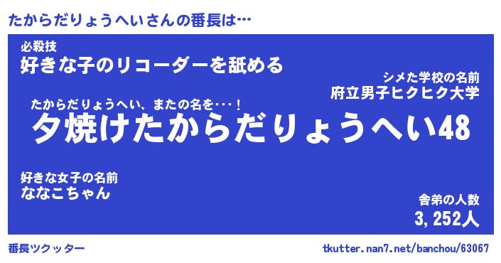 | 伝説のあだ名 | 『封印されしスナイパーたからだりょうへい』 |