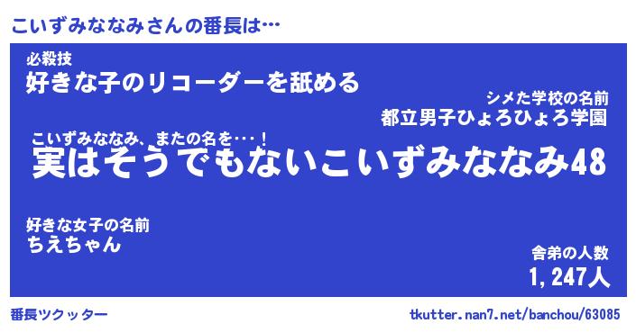 | 伝説のあだ名 | 『封印されしスナイパーこいずみななみ』 |