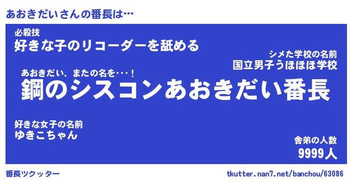 | 伝説のあだ名 | 『封印されしスナイパーあおきだい』 |