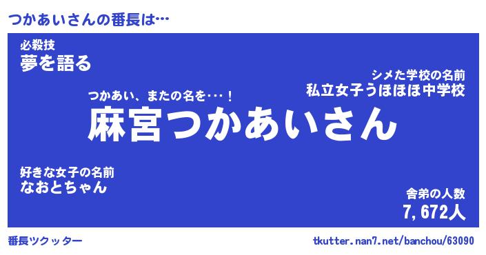 | 意味不明あだ名 | 『ペロリンつかあい』『永久保存つかあい』 |
