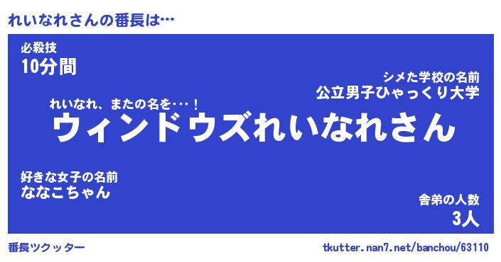 | 男性向けラノベタイトル風あだ名 | 『れいなれの憂鬱』 |