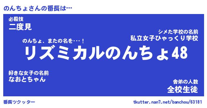 | 意味不明あだ名 | 『ペロリンのんちょ』『永久保存のんちょ』 |