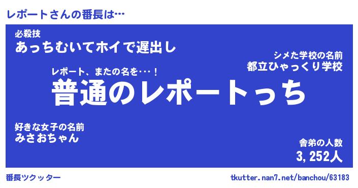 | ファンタジー風あだ名 | 『レポフェル』『エターナルレポートー』 |