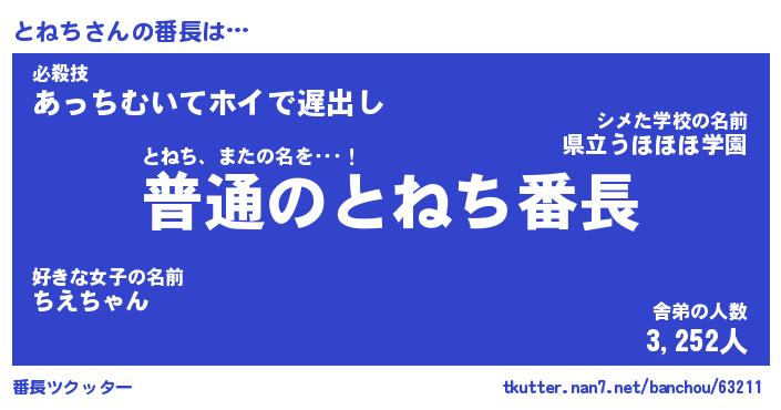 | ポケモン風あだ名 | 『トネチュウ』『トネチダネ』 |
