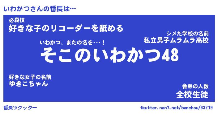 | 意味不明あだ名 | 『ペロリンいわかつ』『永久保存いわかつ』 |
