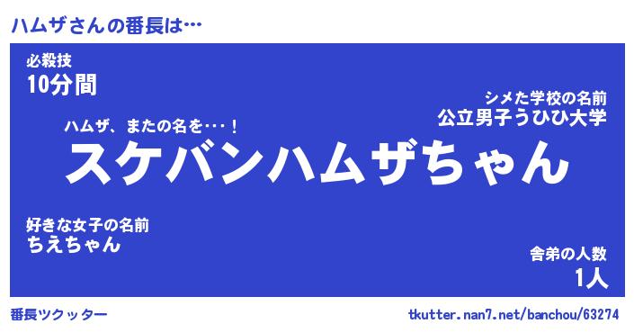 | ポケモン風あだ名 | 『ハムチュウ』『ハムザダネ』 |