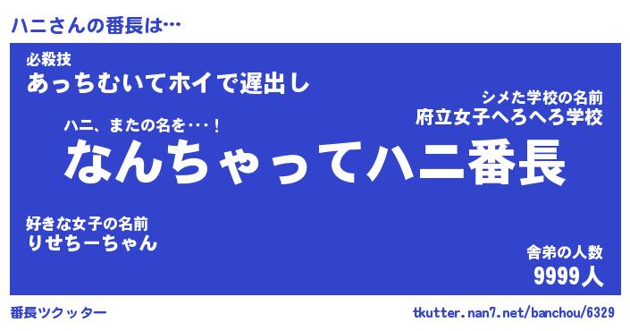 | 意味不明あだ名 | 『ペロリンハニ』『ハニフォーエバー』 |