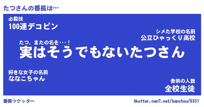 | ピコ太郎風あだ名 | 『タコ次郎』『ピタ六郎』『タツ八郎』 |
