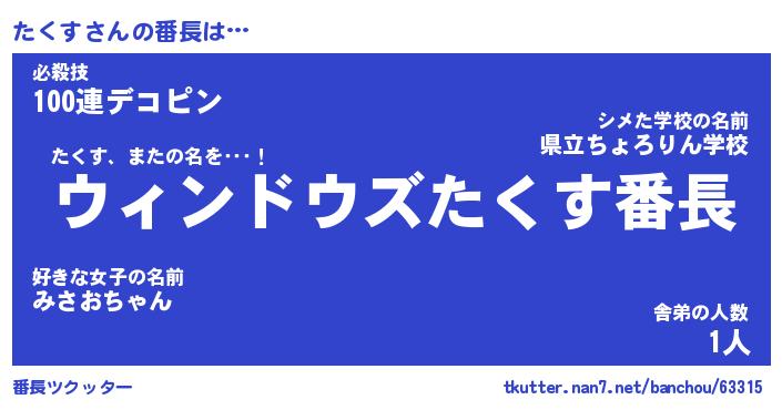 | 伝説のあだ名 | 『伝説のスナイパーたくす』 |