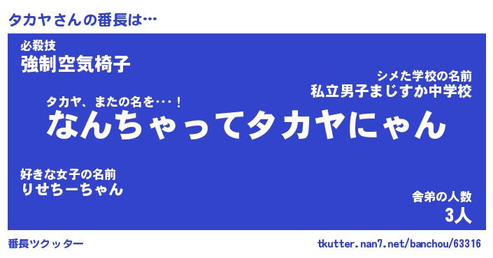 | 意味不明あだ名 | 『ペロリンタカヤ』『タカヤフォーエバー』 |