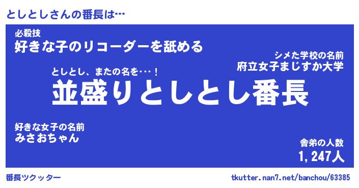 | 意味不明あだ名 | 『ペロリンとしとし』『永久保存としとし』 |