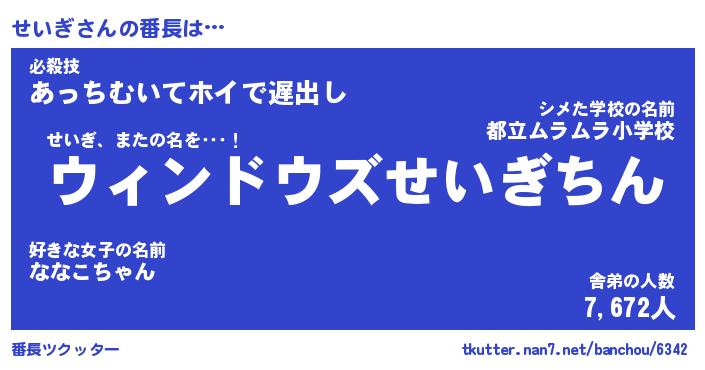 | 伝説のあだ名 | 『伝説のスナイパーせいぎ』 |