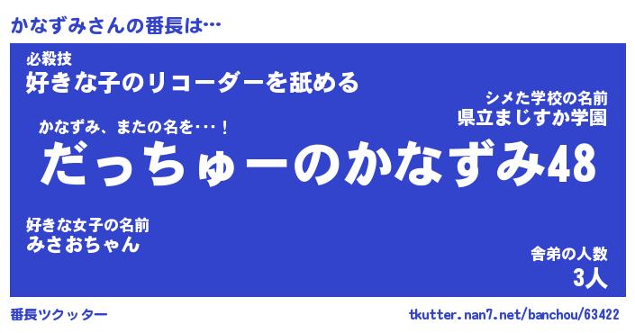 | ファンタジー風あだ名 | 『カナフェル』『エターナルカナズミー』 |