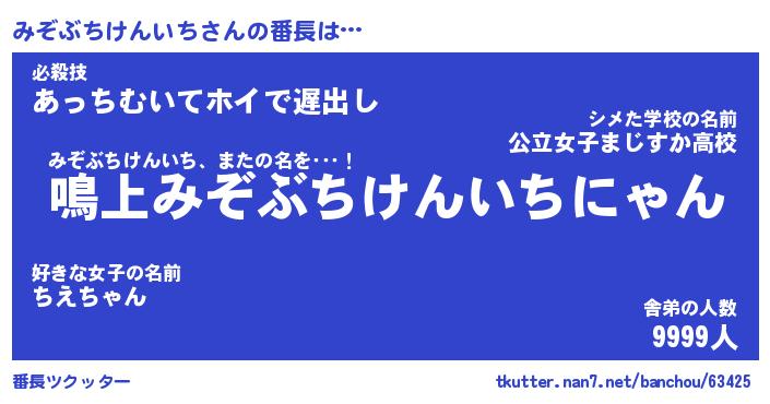 | ヒーロー風カッコイイあだ名 | 『スーパーミゾブチケンイチ』 |