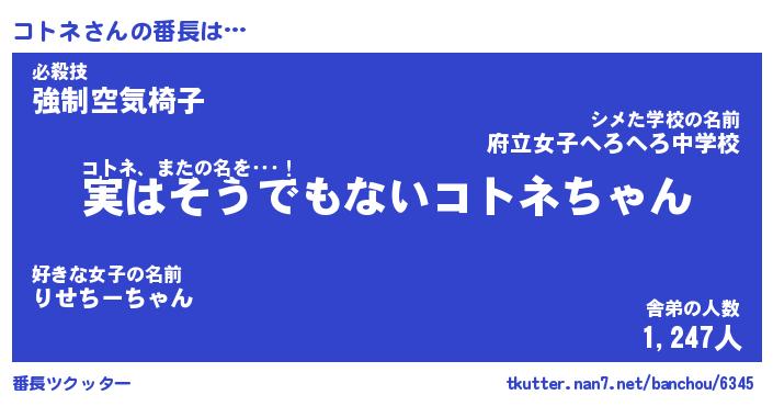 | 伝説のあだ名 | 『封印されしスナイパーコトネ』 |