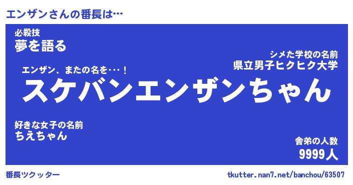 | ポケモン風あだ名 | 『エンチュウ』『エンザダネ』 |