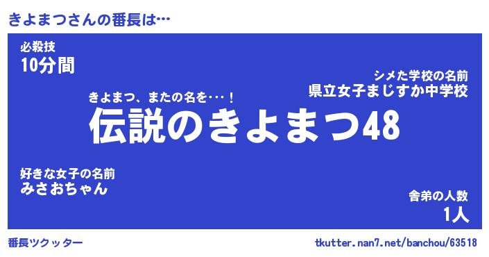| 男性向けラノベタイトル風あだ名 | 『きよまつの憂鬱』 |