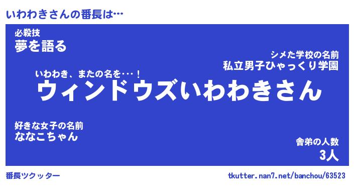 | ファンタジー風あだ名 | 『イワフェル』『エターナルイワワキー』 |