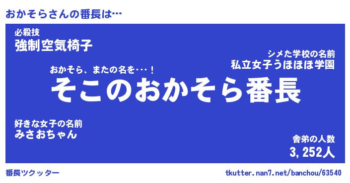 | 意味不明あだ名 | 『ペロリンおかそら』『永久保存おかそら』 |