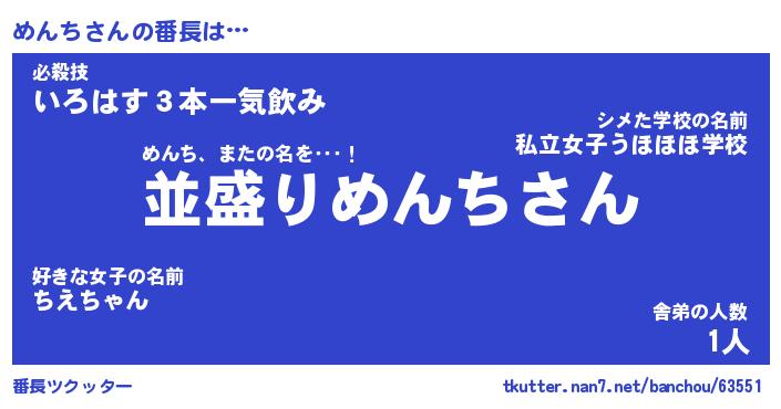| ヒーロー風カッコイイあだ名 | 『スーパーメンチ』『ウルトラめんちマン』 |
