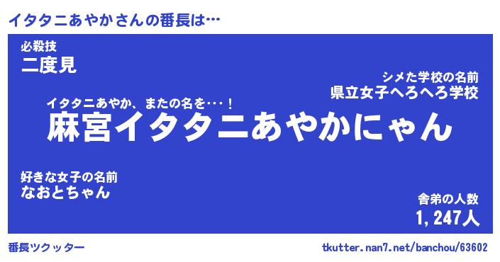 | 肩書あだ名 | 『イタタニあやか店長』 |