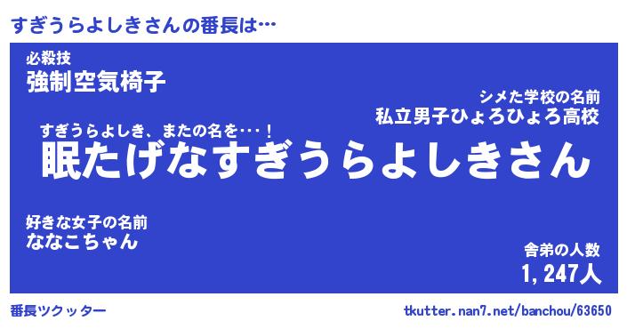 | 意味不明あだ名 | 『ペロリンすぎうらよしき』 |