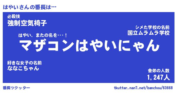 | ファンタジー風あだ名 | 『ハヤフェル』『エターナルハヤイー』 |