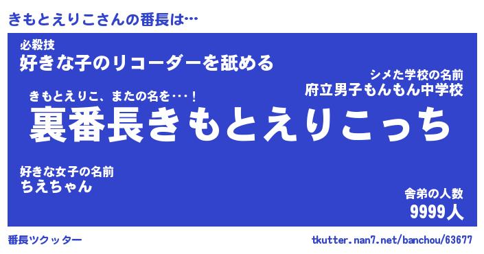 | ヒーロー風カッコイイあだ名 | 『スーパーキモトエリコ』『天弓騎士キモ』 |