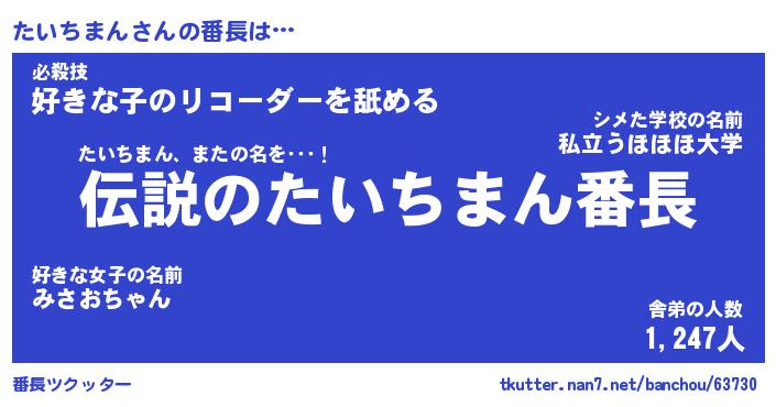 | 伝説のあだ名 | 『伝説のスナイパーたいちまん』 |