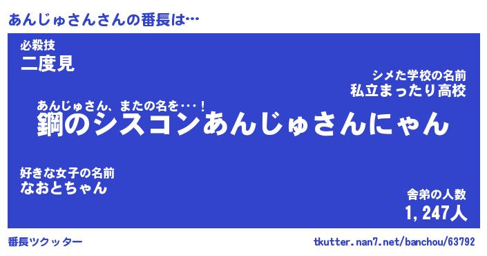 | ヘコむあだ名 | 『あんにゅー』『酢こんぶ』 |
