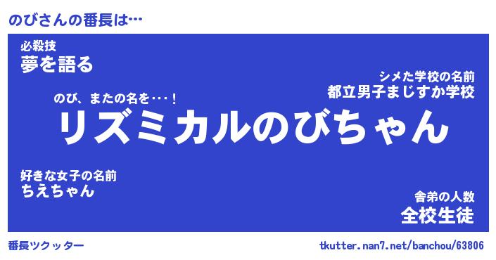 | 肩書あだ名 | 『のび社長』『のび総理大臣』 |