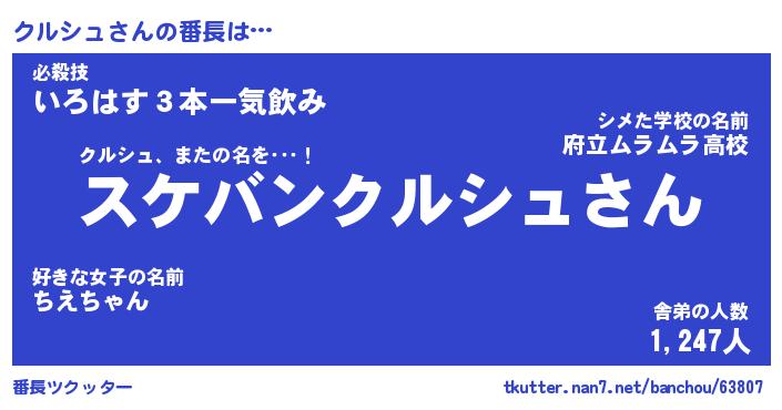 | ポケモン風あだ名 | 『クルチュウ』『クルシダネ』 |