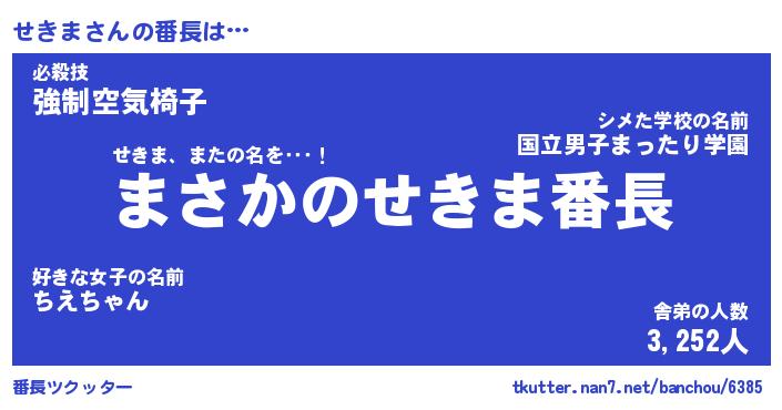 | ヒーロー風カッコイイあだ名 | 『スーパーセキマ』『ウルトラせきまマン』 |