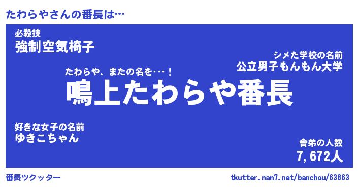 | ヒーロー風カッコイイあだ名 | 『スーパータワラヤ』『暗黒騎士タワ』 |