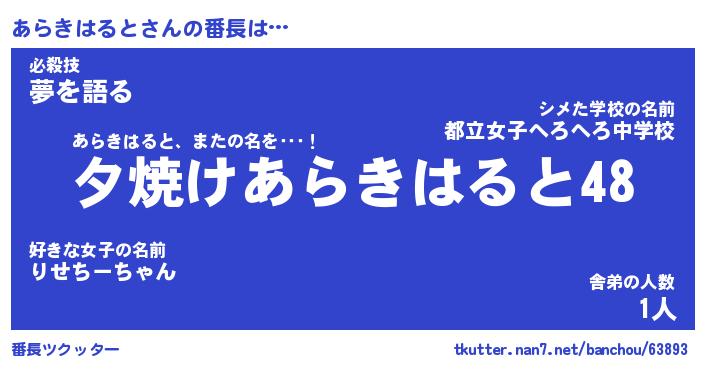 | 男性向けラノベタイトル風あだ名 | 『アラキハルトアートオンライン』 |